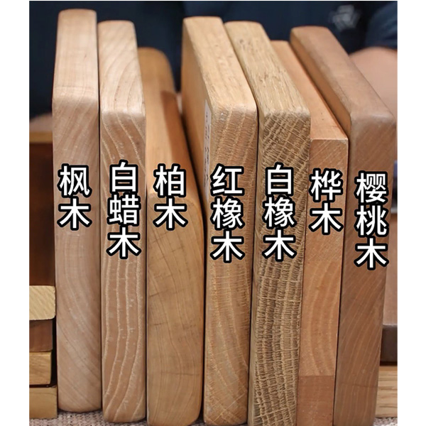 First is maple. Maple is light in color, hard, and has a fine texture, making it suitable for large-scale use. However, it is prone to warping. Second is ash. Ash is also light in color with a very bold, textured grain, making it suitable for open-pore finishes and giving it a pleasant feel. However, its