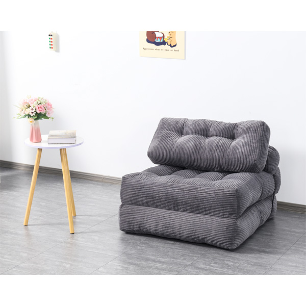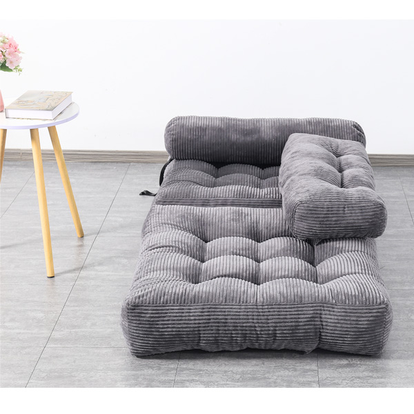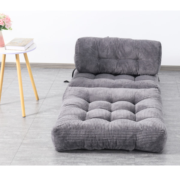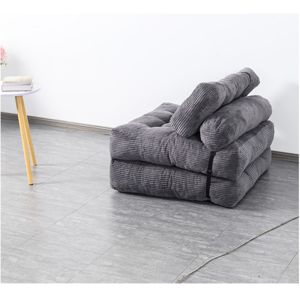 This folding sofa bed blends style and durability, featuring high-density rebound foam and breathable corduroy fabric. It comes with a headrest and lumbar pillow for optimal body support, meeting needs for work, reading, relaxation, and sleep. Easily convertible between floor sofa, recliner, and mattress, it’s the perfect solution for small spaces.
